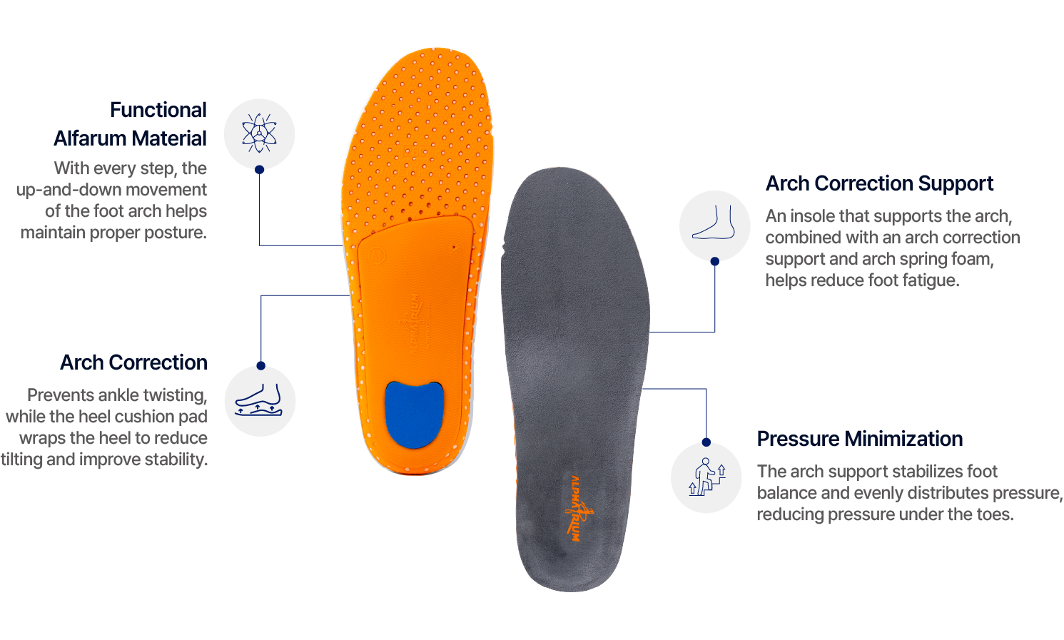 This is a patented functional insole made with a new functional Alparium material, designed to enhance overall body function. By promoting proper walking posture, it helps prevent musculoskeletal disorders affecting the shoulders, neck, lower back, and leg muscles. In particular, if your gait is unstable, using a functional insole is recommended for posture correction.