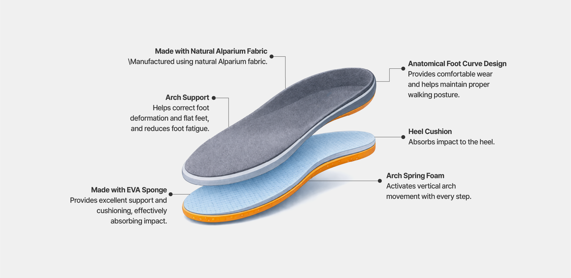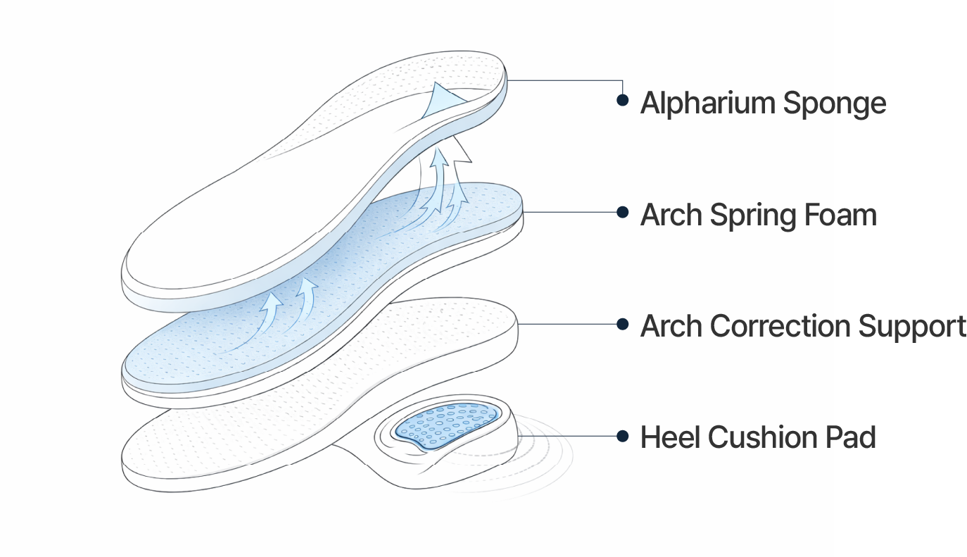 This is a patented functional insole made with a new functional Alparium material, designed to enhance overall body function. By promoting proper walking posture, it helps prevent musculoskeletal disorders affecting the shoulders, neck, lower back, and leg muscles. In particular, if your gait is unstable, using a functional insole is recommended for posture correction.